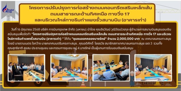 สนามบินสมุย มอบเช็คเงินสด 2 ล้านบาท สร้างถนนคอนกรีตเส้นตัดหัวรันเวย์ให้ชาวบ้านสัญจร